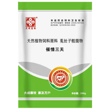 【用法用量】猪、羊一次90克用一次,牛一次用200克用一次。(每袋仅供一头母畜使用)。